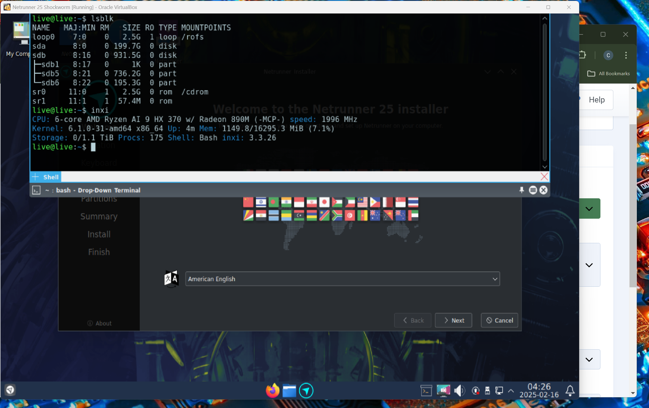 The goal is to partition and set Linux up on the drive using a Virtualbox, since I could not get the Mediatek Wi-Fi 7 MT7925 wireless device to connect