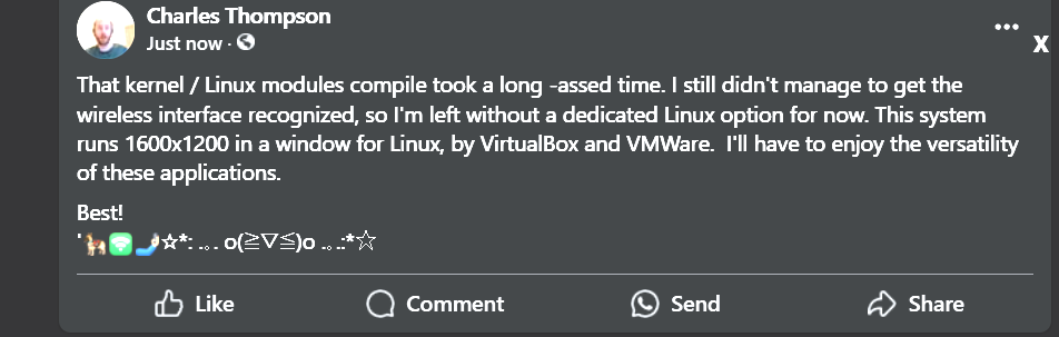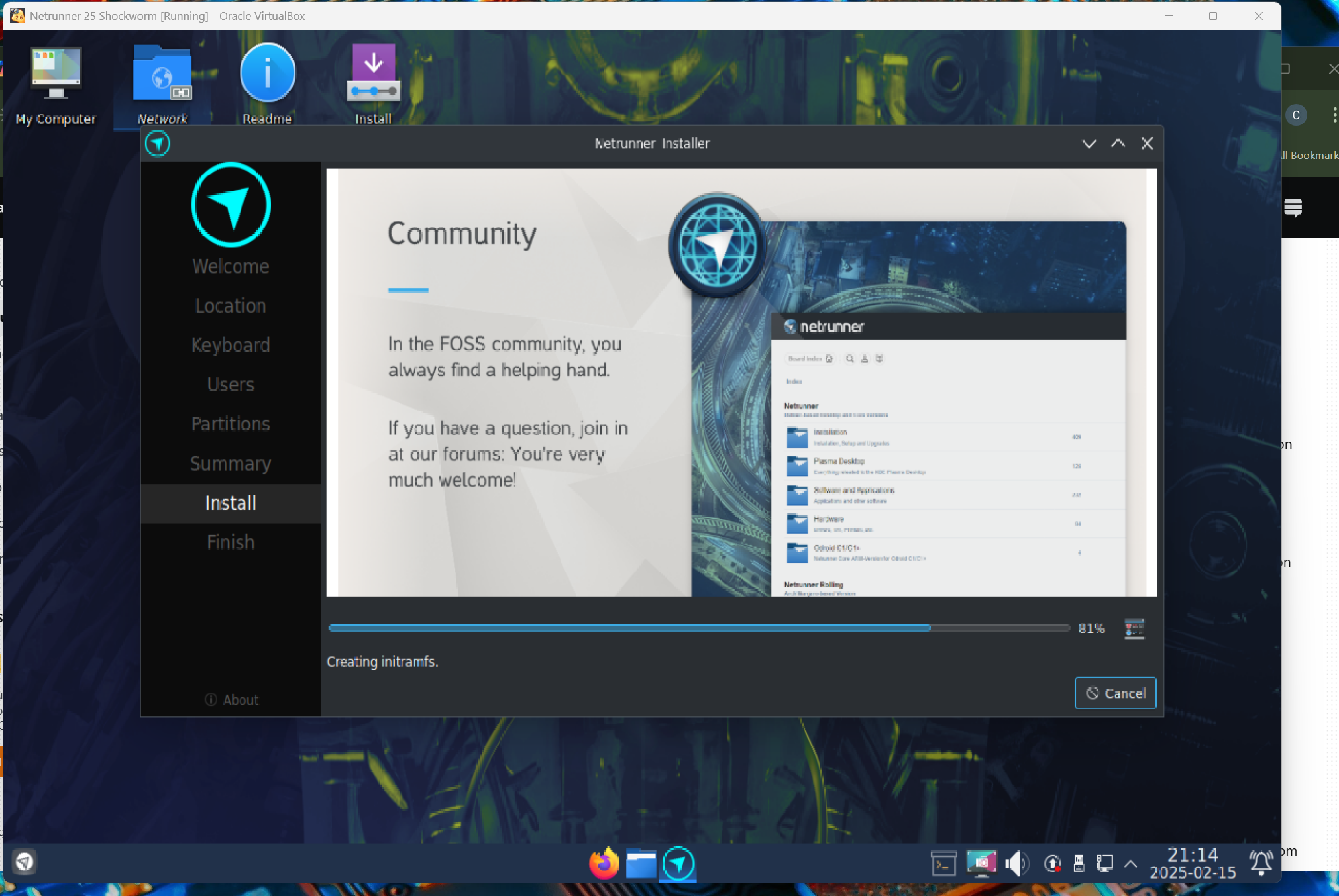 It needs a compiled Linux kernel with specifics to my wireless card, many .deb files. Maybe I'll automate a way to get this done. It took me several days to understand EFI BIOS and its relation to Grub. Its a Linux party, on my own at age 42 doing my runs against being Not able to install Netrunner 25 "Shockworm". I wanted a pro-grade OS that Netrunner looks like, so I am trying to put the disk's files on the 23GB Linux installation partition of my Extreme SSD.
